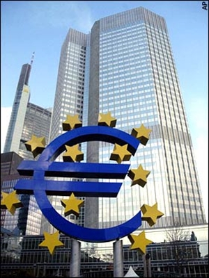 ساختمان بانک مرکزی اروپا و نماد (یورو) در مقابل آن